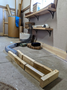 Guests can use these materials to create a ball maze. Use the blocks to hold things in place or act as walls. Grab more tubes from the bin and experiment with different sizes and weights of balls.