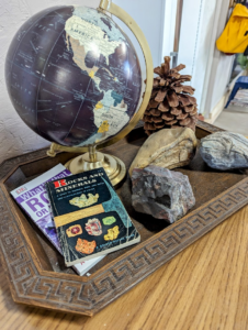 Do you like to hunt for rocks? We do! These rocks were found locally along the LeSueur River, just south of Mankato. Along shallow creeks and waterways are great spots to hunt for rocks. Rocks can tell us the geological history of our area, like how the land has changed over time and what types of plant and animals used to live here! Rock are beautiful and fascinating – do you see the different lines, layers, colors and shapes? Using the books, see if you can identify the rocks!