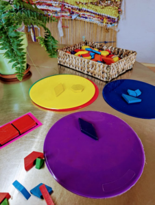 These colorful loose parts are great for creating temporary art, building, sorting by size, shape or color or counting using a 5 or 10 frame. Children innately want to hold, sort, carry and talk about all sorts of items, which is the beginnings of understanding math concepts. To understand most things, we need to have it in our hands before it is in our minds. And we can do that through play!