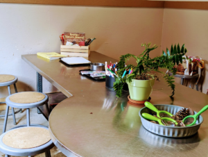 Each Wednesday afternoon from 1pm -3pm you can find a facilitator in the Loose Parts Play Hub with special materials to start or continue working on a Nature Journal! Use our Explorers Backpacks to explore the Back 40, find bugs, leaves, flowers, grass, dirt, rocks – bring them back to the LPPH to look at closely, draw, paint or write about. Recycled art journals, pencils, tape and watercolors are available each day!