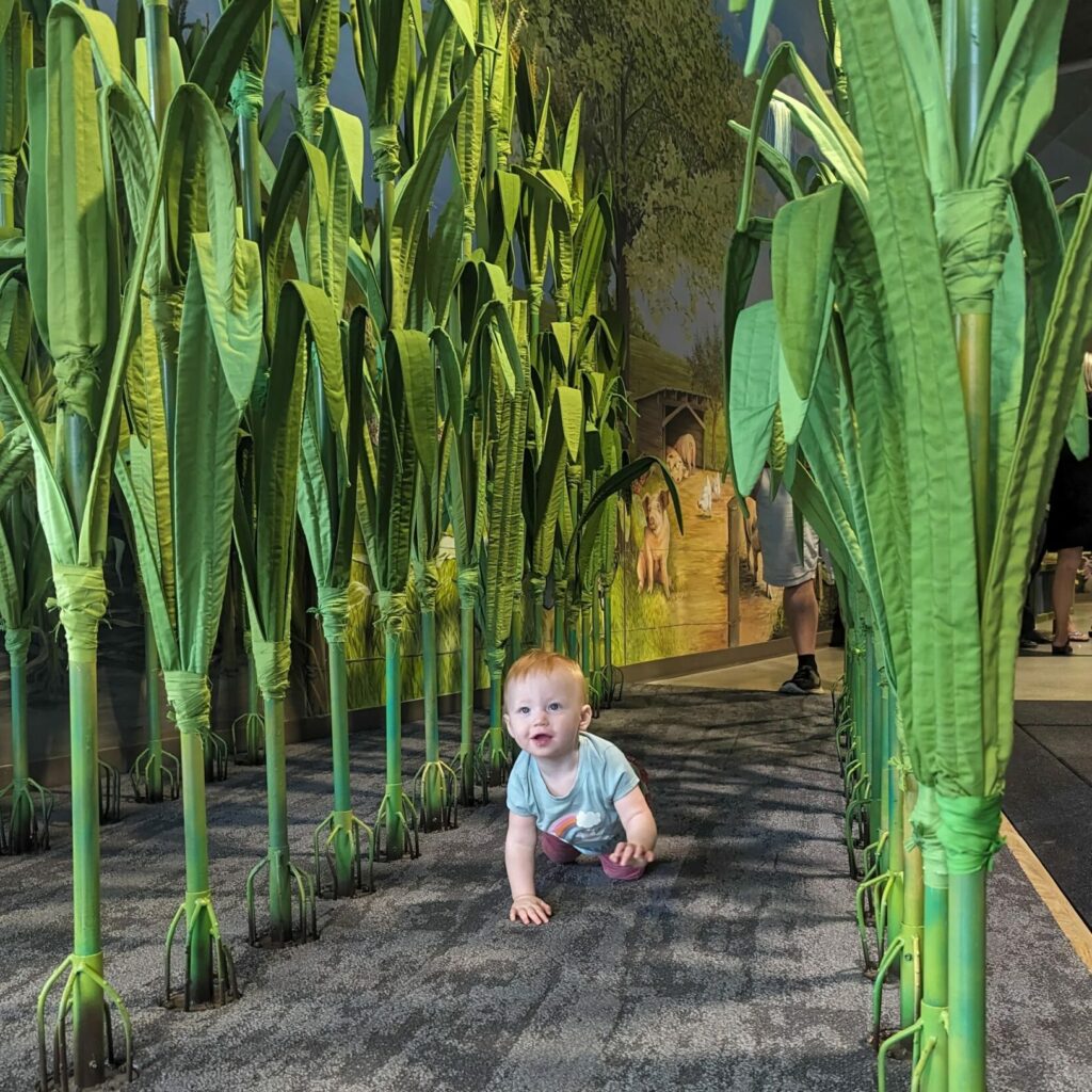The transformed full-size AGCO, Fendt Tractor is perfect for climbing, driving and farm make believe. Visitors can climb into the cab for an immersive experience from three vantage points: front, side, and back. The Corn Field, features lifelike corn plants that are mounted on a sturdy structure, carefully designed for visual and sensory impact. The attention to detail in the field is evident as rigid stalks transition to lifelike corn cobs, leaves, and silks. Visible roots become conversation starters, initiating discussions about water absorption through roots.